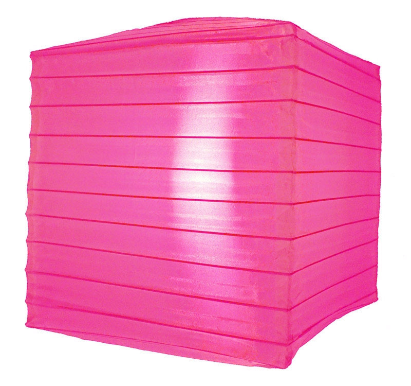 This hot pink nylon square lantern is durable and long lasting. This lantern has a shimmer to it which regular paper lanterns do not have. Great for outdoors, this lantern is much more durable outdoors than regular paper lanterns.10" square. (All lanterns sold without cord, cord must be purchased separately)