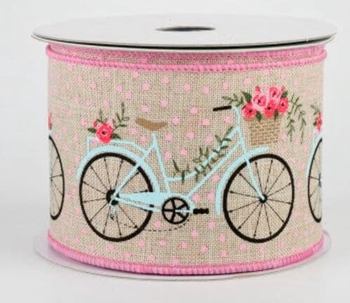 - 2.5 inches wide Bicycles Wired Ribbon, Summer Ribbon