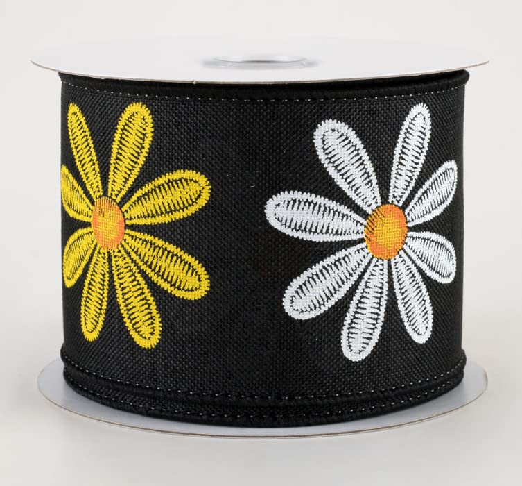 - 2.5 inches wide Black Daisy Wired Ribbon