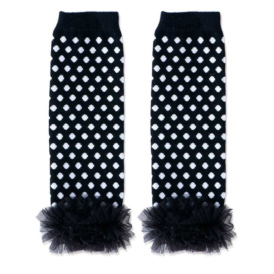 - Baby Girls Black & White Leg Warmers with Chiffon Ankles