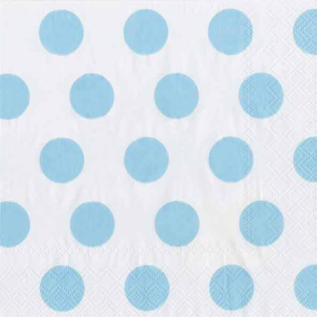 - 20-Count package of 3-ply paper cocktail napkins. 5 x 5-Inch folded size. Big Dots Soft Blue design is perfect for baby showers or summer picnics and parties. Printed in Germany using non-toxic, water soluble dyes. Matching Hostess napkins.