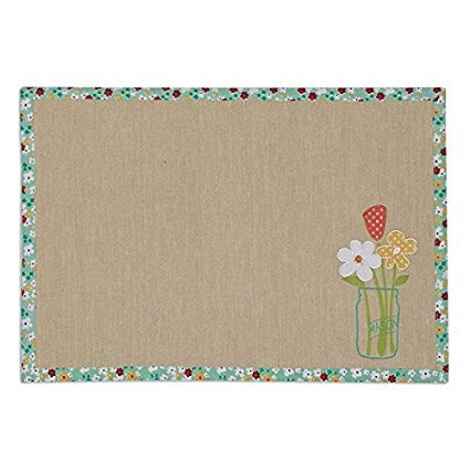 Ditzy Daisies Embellished Placemat. Reversible. 13 x 19". 100% Cotton. Hand wash cold � Line dry � Low iron. Matching napkins available and sold separately.