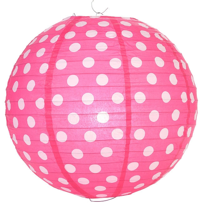 This lovely fuchsia Polka Dot lantern is 14" in size. Beautiful lantern on a fuchsia background accented with white Polka Dots, this lantern will definitely create a lasting impression on your guests. Our lantern has a "S" hook on top of the lantern for hanging, you can hang these lanterns using fishing line or ribbon.