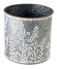 Galvanized floral wildflower bucket planter holds plants inside or out. 11 inches diameter x 10-1/2 inches high.