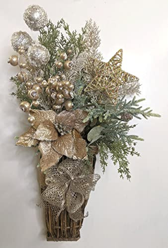 - Gilded Gold Winter Door Basket, Christmas Door Basket, Gold floral arrangement, 115