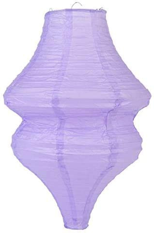 Lavender color paper lantern in a unique beehive shape. Lantern is held open with a wire expander. Dimensions: 10.5"W x 15"L Set of 2.