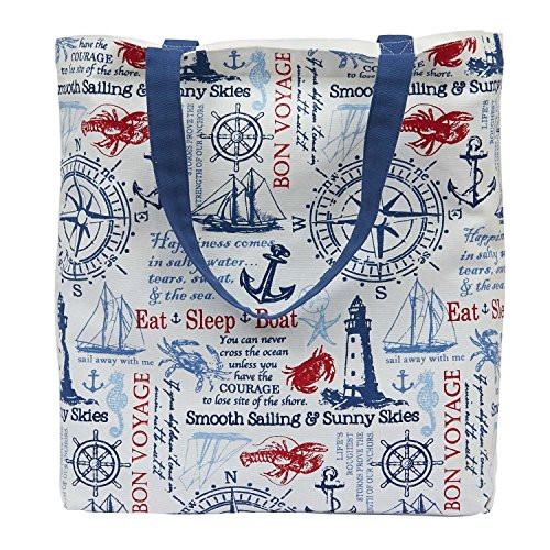 Super cute for carrying your personal items to the beach or for a day on the boat. Also great for hauling groceries. 15"w x 15 1/2"l x 4 1/4" gusset . 100% Cotton. Machine wash cold separately Gentle cycle Tumble dry low Low iron.