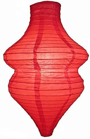 Red color paper lantern in a unique beehive shape. Lantern is held open with a wire expander. Dimensions: 10.5"W x 15"L. Set of 2.