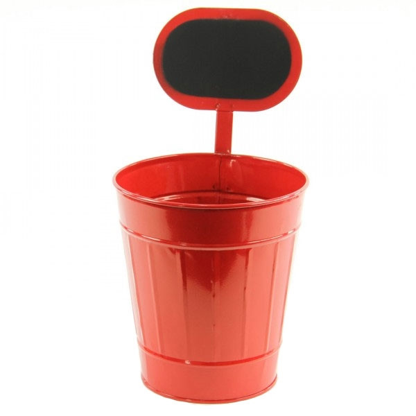 - Red Tin Planter/Container w/ Chalkboard - Large 12-1/2"