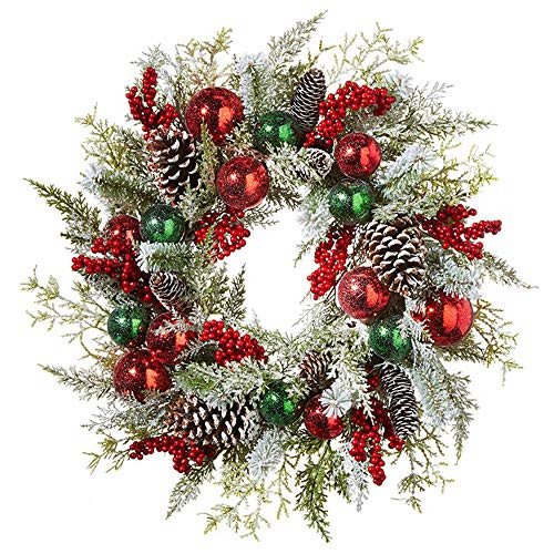 - SAFA 24 Inch Iced Ball and Pinecone Wreath, Winter Wreath, Holiday Wreath, Chrstmas Wreath