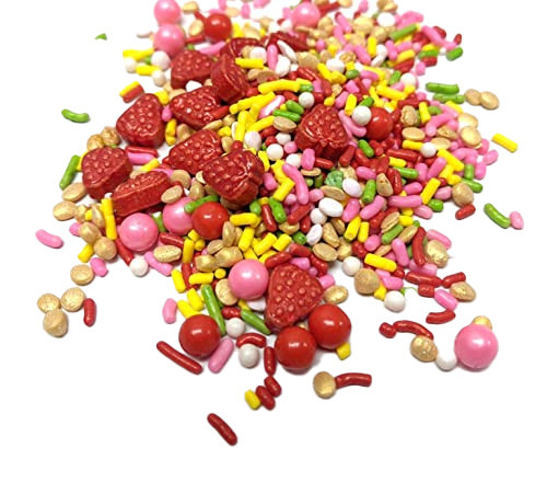 Strawberry Lemonade Sprinkles, Strawberry Lemonade Yum Crumbs, Lemon and Strawberry Flavored Jimmies, Summertime Cookie Decorations, Summertime Cake Decorations