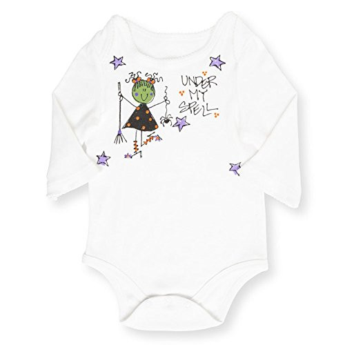 Long Sleeve Under My Spell One Piece with Picot Trim. 6-12 months. 100% cotton. Machine washable.